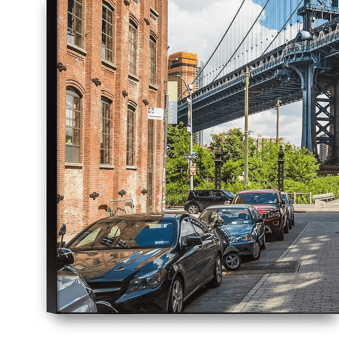 The Manhattan Bridge is a suspension bridge that crosses the East River in New York City, connecting Lower Manhattan with Brooklyn. This neighborhood is called DUMBO. The area was originally a ferry landing, characterized by 19th- and early 20th-century industrial and warehouse buildings, now it becomes more and more a popular…