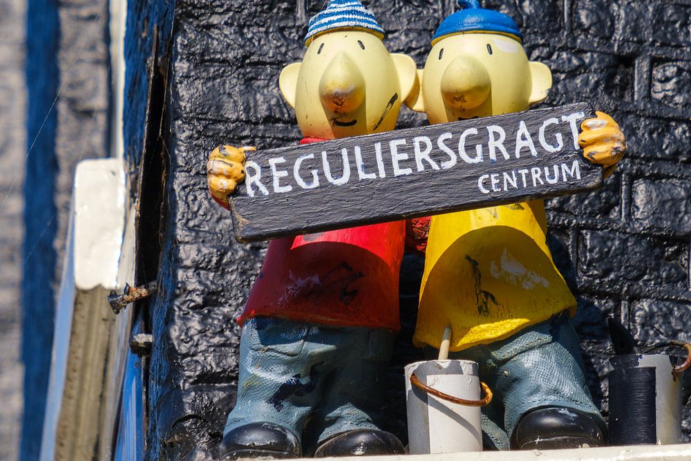 Clumsy duo Buurman and Buurman stand on the facade of an Amsterdam canal house along Reguliersgracht, in the centre of Amsterdam. Ajeto! This picture was taken in June 2025
