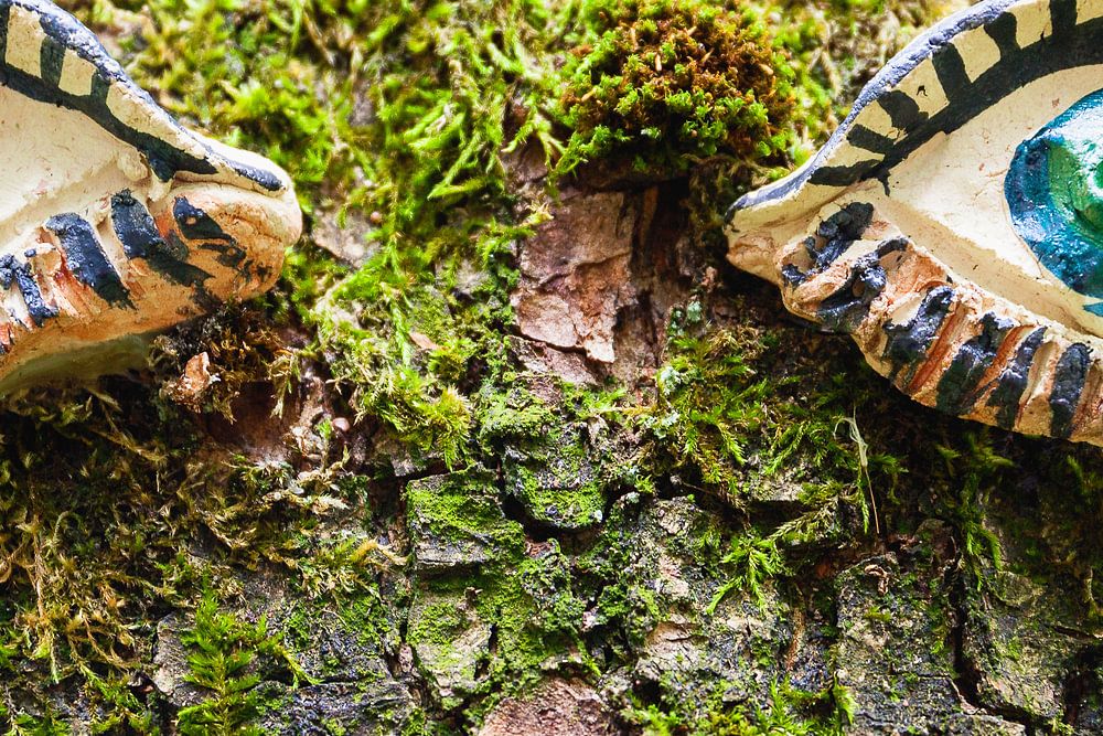 Two clay made eyes give this Oak Tree in the forest a face and thus a character. The photo was taken in the summer of 2016.