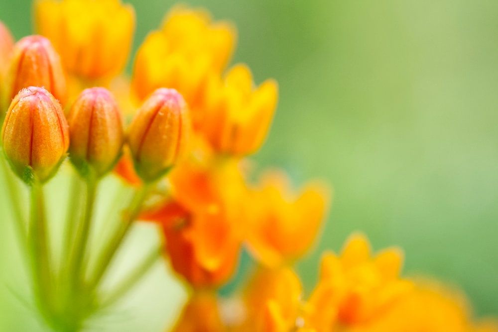 Orange Butterfly Milkweed landscape macro with a focus on the milkweed buds. This macro photograph of the orange butterfly milkweed has a soft, romantic atmosphere.