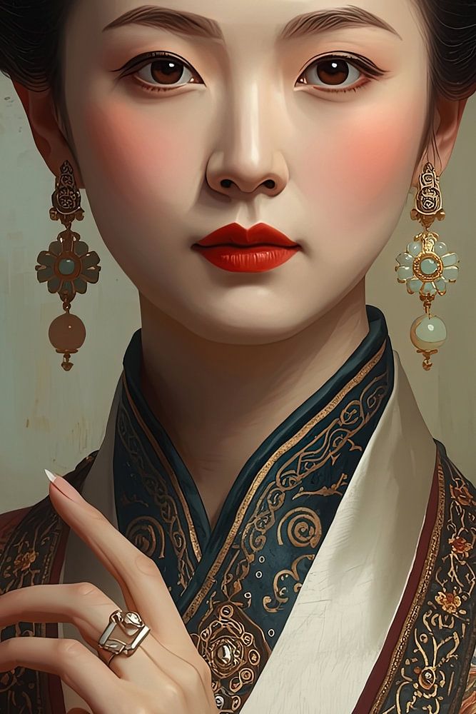 This ai generated image is a one-off and gives a reasonably good representation of a traditional Chinese lady from the 17th and 18th centuries.