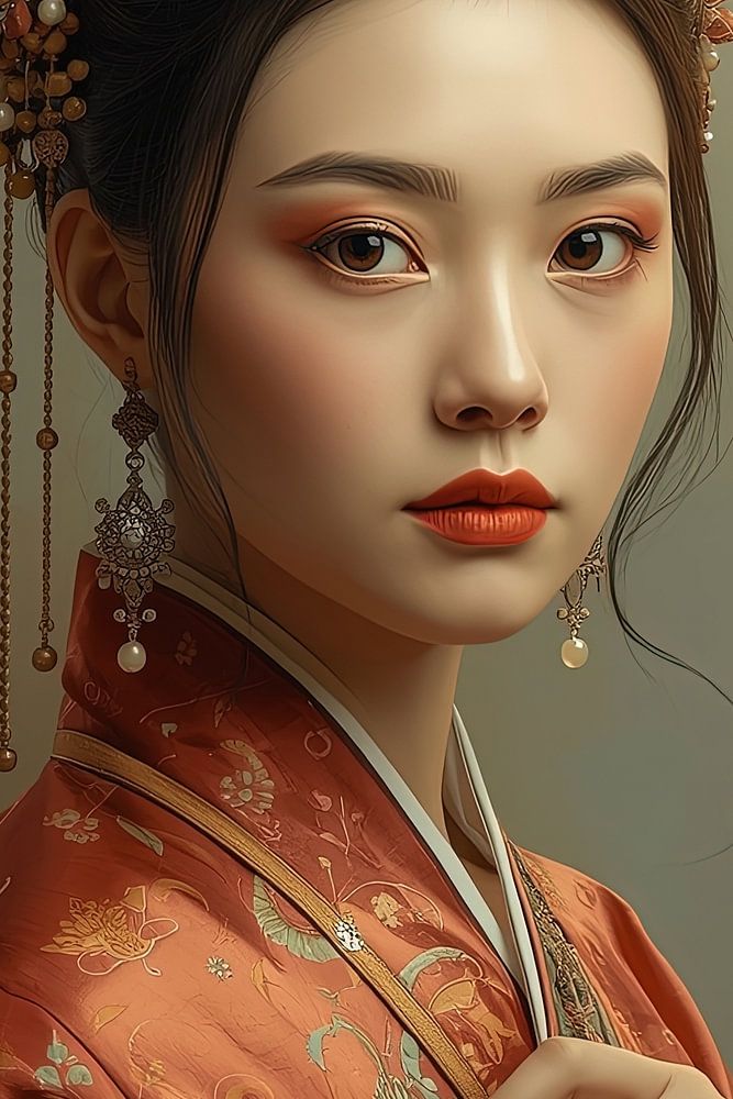 This ai generated image is a one-off and gives a reasonably good representation of a traditional Chinese lady from the 17th and 18th centuries.
