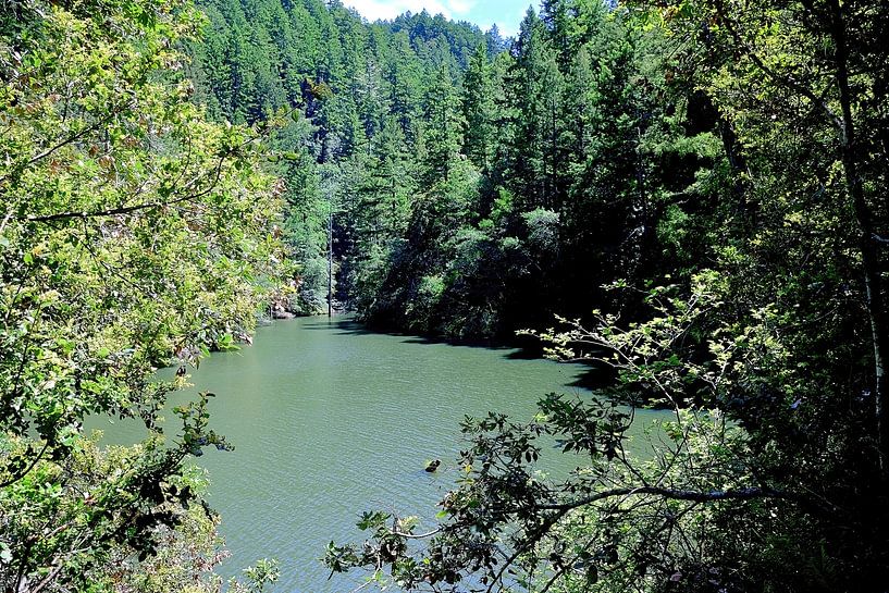 Overlooking part of Alpine Lake while hiking the Cataract Trail near the coastal community of Bolinas in California, USA. We are not hardened hikers but this was a relative easy trail which we only followed for a short time. Beautiful area though.