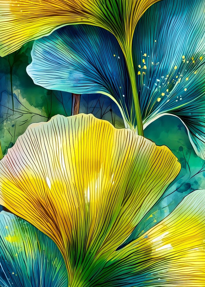 About "Painterly florals Evergreen Ginkgo Biloba 4"