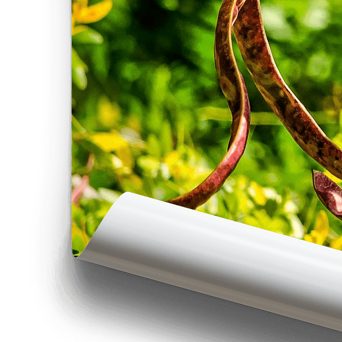 Striking red pods of a Gleditsia triacanthos, also known as honey locust, on a sunny day in autumn.