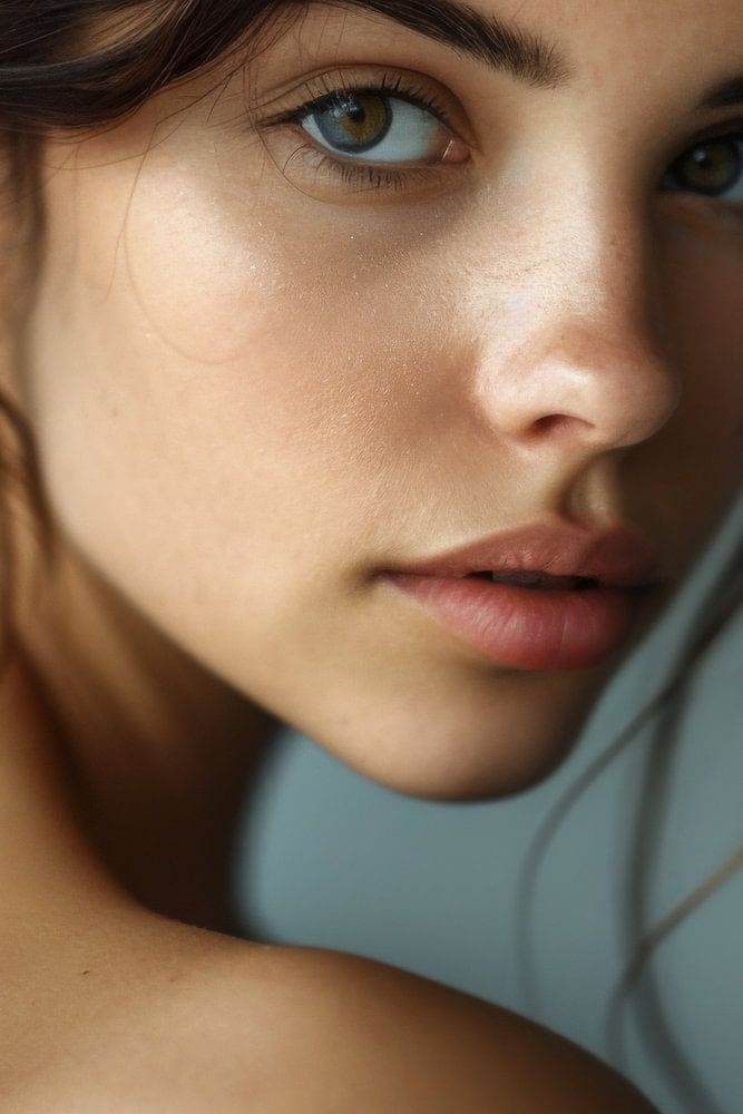 This elegant portrait of a woman emphasises her natural beauty with soft lighting and a simple background. The delicate lighting emphasises her soft facial features and deep, expressive eyes, while the subtle colour palette conveys a sense of calm and intimacy. Ideal for art lovers who appreciate timeless and understated elegance in their artwork.