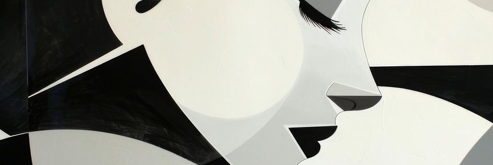 This impressive work of art presents a portrait of a woman in a stylised, geometric design language and a monochrome colour palette. The contrasts between black and white and the clean lines create a visually captivating composition that is both timeless and modern. Ideal for lovers of minimalist and elegant art who want to bring a touch of sophistication to their living spaces. This piece exudes calm and strength and fits perfectly into any modern interior.