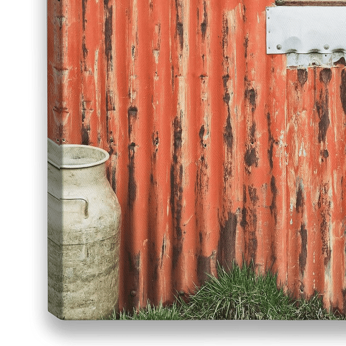 Icelandic houses are often made of corrugated steel sheets. About the only thing that can survive the harsh Icelandic climate. That steel is weathered and sometimes shows beautiful hues. This also applies to this wall from an old Icelandic farm. If you look closely, you can still see the snout of the local shepherd dog in the window.