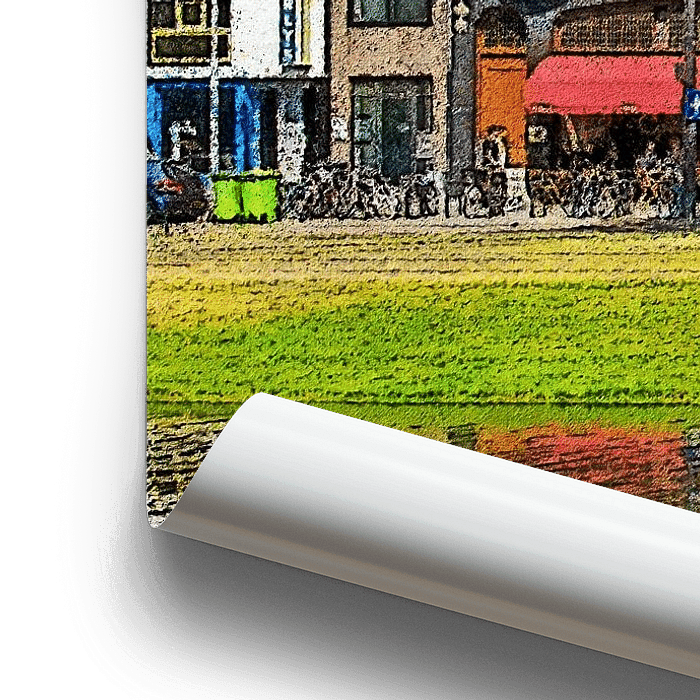 The facade of café De Unie can just be seen on the far left. This tavern was originally located on the Coolsingel and was destroyed during the bombing. The facade on Westersingel is a replica from the eighties. In this way too, this digital painting connects old and new.