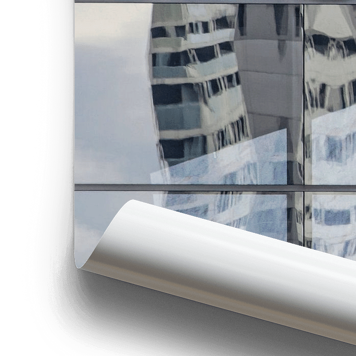The city reflects in the glass, especially the Calypso complex, which looks even more whimsical in the reflection than in real life.