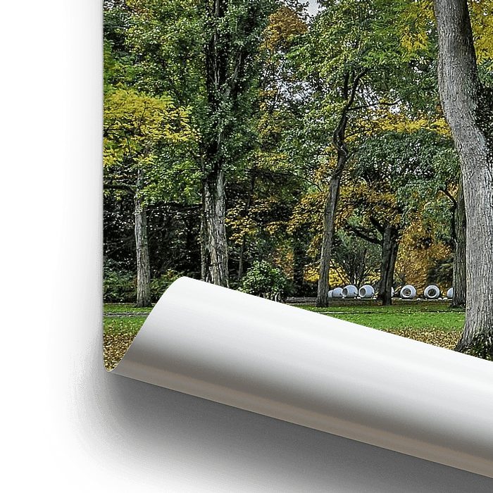 In summer the Park near the Euromast observation tower is often the scene of festivals but on this autumn day it is deserted. One of the trees which are shrouded in autumn colors seems to reach out with its branches towards the Euromast. Left in the background one can see the new sculpture / play object the Lost Pearl, designed by Madeleine Berkhemer.