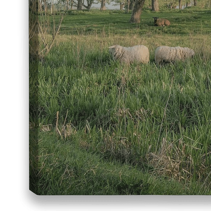 Buy the photo Schapen tussen boomgaard by Moetwil en van Dijk - Fotografie on canvas, ArtFrame, poster and wallpaper, printed on demand in high quality.