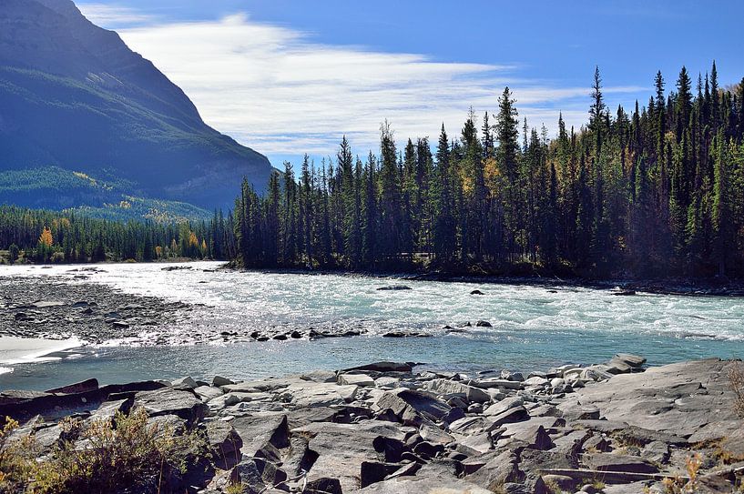 The Atabasca River along the Icefields Parkway in Alberta, Canada provides everlasting memories. The colours of the river were truly beautiful in the morning light as the sunlight was reflected in the flowing water.