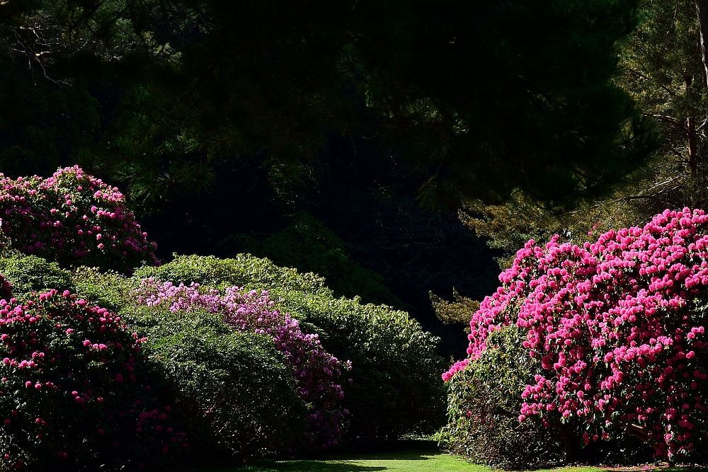 So many rhododendrons at the side of the perfectly mowed lawns in the gardens around Muckross House, Killarney, Ireland). We didn't have that much time but one could spend hours in these gardens.