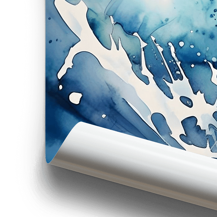 This work captures the playfulness and grace of a dolphin in full jump, surrounded by an explosion of water and movement. The watercolour technique gives the work a light and dynamic feel, with the subtle transitions of blue and white enhancing the sense of movement and freedom. The dolphin, a symbol of joy and harmony, comes to life through the flowing brushstrokes and soft yet vibrant colour tones. The choice of a watercolour style is reminiscent of the work of artists such as Winslow Homer, known for his masterful renderings of the sea and maritime scenes.