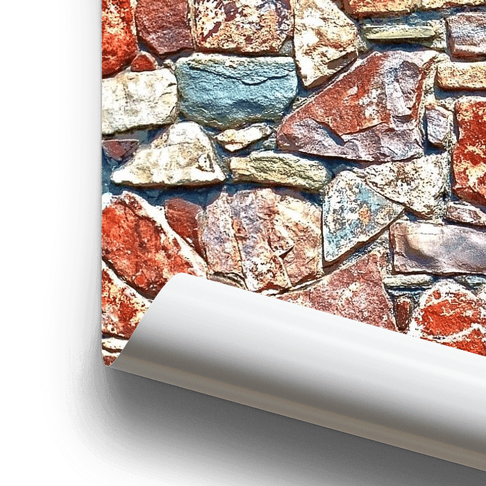 A lively pattern of colors and shapes in a traditional wall, built with stacked stones, Bristol, England.