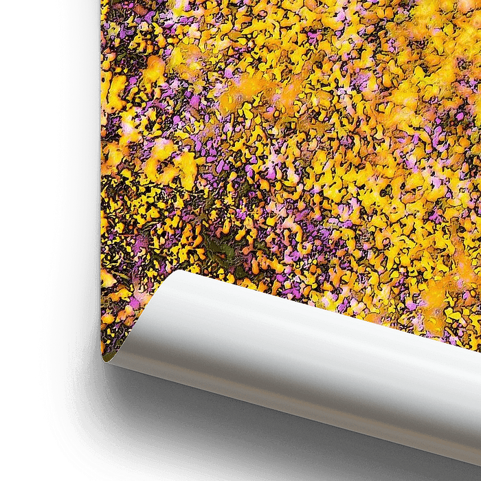 Colorful, livly, kaleidoscopic image created by copying, rotating and blending a photograph of purple loosestrife and goldenrods in a garden on a sunny summer day.
