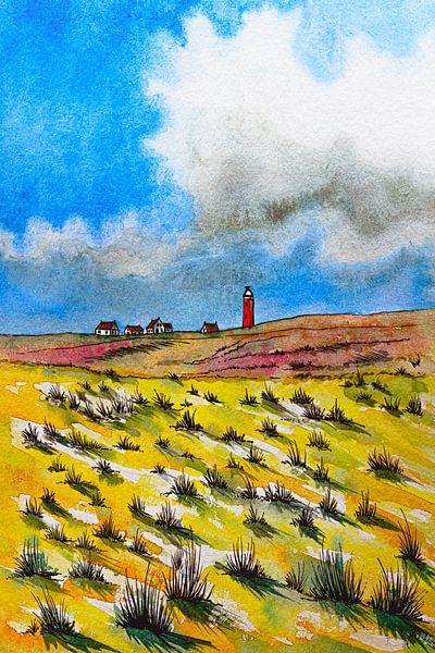 The Dunes of Texel and the Eierland Lighthouse is a Handmade Watercolour Painting by Ricardo Bouman.
