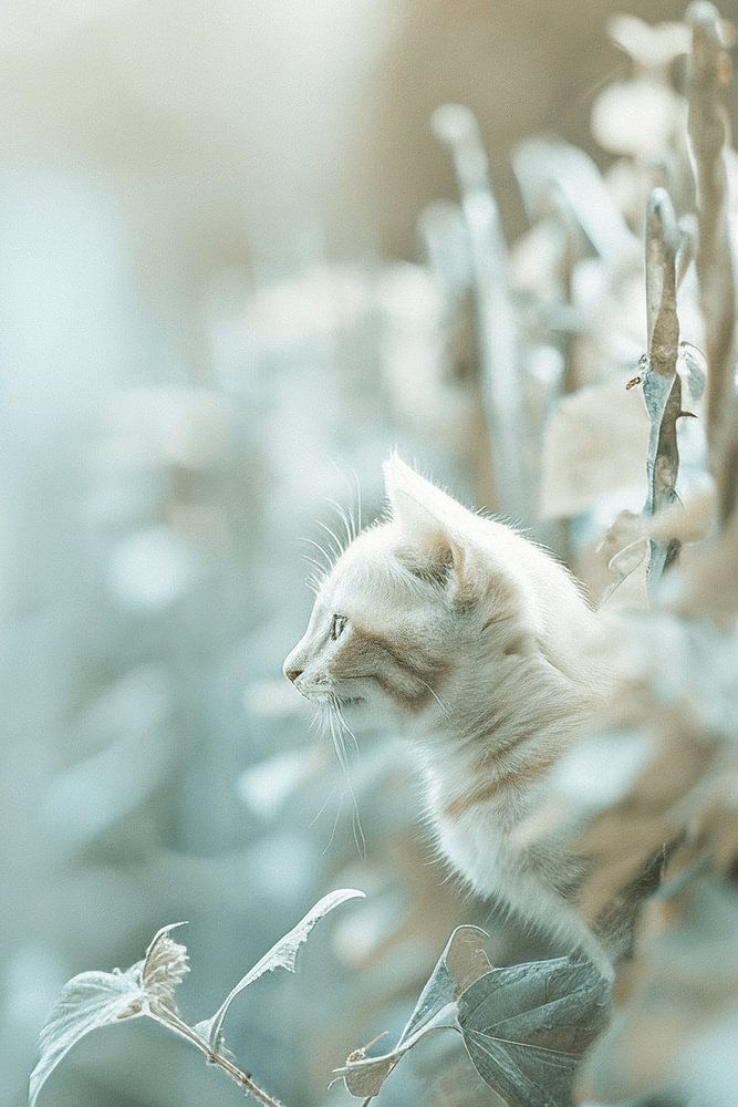 For the colour tone, I deliberately chose soft pastel blue tones. It gives that little bit extra, a bit more tenderness and sweetness. Beautiful light blue with soft bokeh in the background. The pastel colours create a soft, dreamy look that perfectly matches the cuteness of the depicted cat.