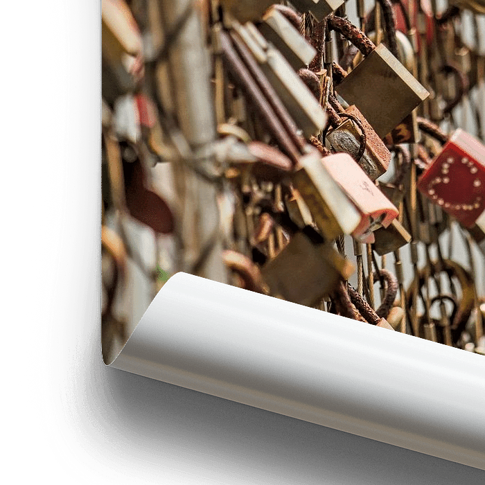 A close-up of the railing of the Rijnhaven Bridge in Rotterdam, to which dozens of couples in love have attached a lock, as a seal of their love. The custom can be traced back to the Milvian Bridge in Rome and Federico Moccia's novel Ho voglia di te. But it probably happened earlier in other parts of the world.