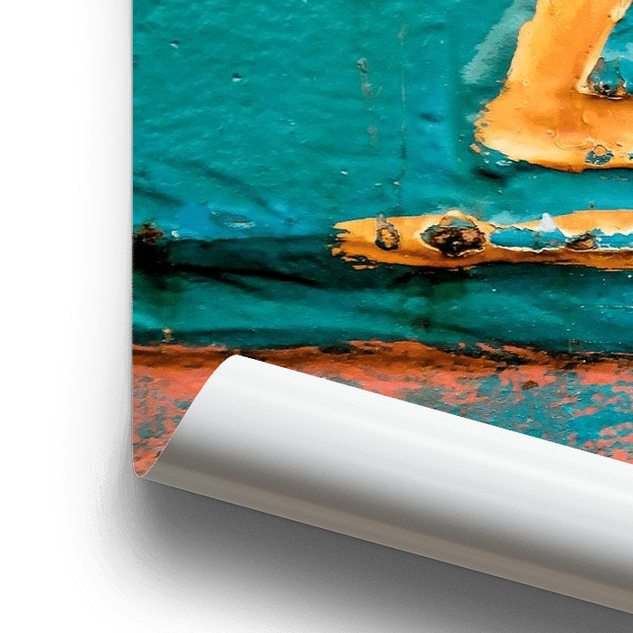 The play of colors, lines and shapes in this detail photo of a steel ship's hull makes me happy. A wonderful color combination of a turquoise-like blue, a pink area and a bit of red, with an accent in bright yellow to finish it off. There are some scratches and bumps that give the surface texture and there is a sloppy stroke of blue paint on the pink surface.