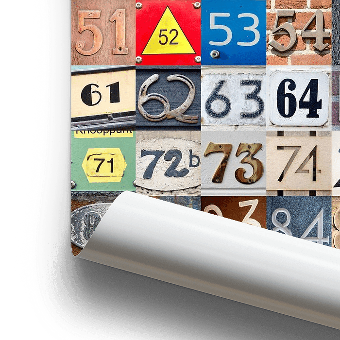 This work is the result of a special photography project: the numbers challenge. Over the course of two and a half years, these hundred numbers have been brought together, one by one, with the aim of creating a colourful collection of colours, fonts, materials and forms of use. Old and new, steel, copper, wood and plastic, house numbers, menus, petrol stations, number plates, advertising posters and lampposts, it's all there.