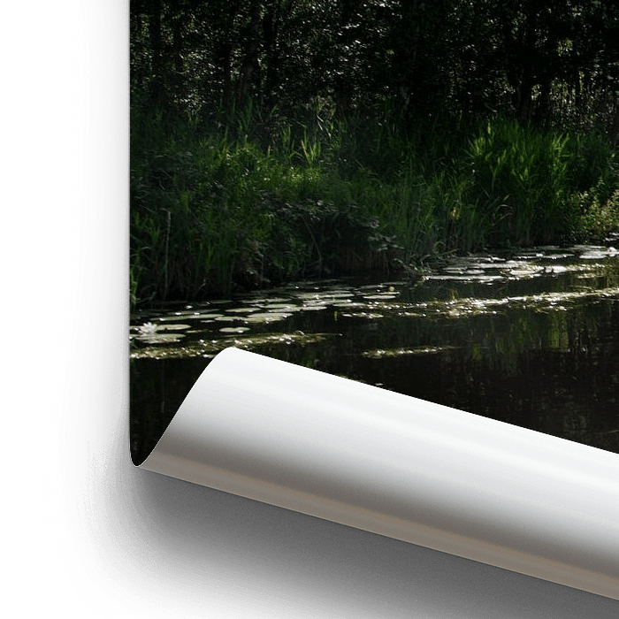 You sail the boat between the Water Lilies on the dark, clear water. In the water is the mirror of everything around it. Which makes the greenery even more impressive. The leaves of the Water Lilies reflect the sunlight. Along and over the boat fly and walk lots of dragonflies, damselflies, butterflies and other kinds of insects. You can hear the birds singing their song and feel the wind blowing through your hair on the sections that are a little wider. The narrower pieces are more sheltered.