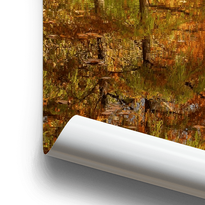 Autumn is surely the most beautiful time of the year. All those beautiful warm colours everywhere. And the more the sun shines, the brighter and more beautiful the colours are. They are even more beautiful when it has rained and then the sun shines. Then the colours are really intense. Imagine a sunny autumn day with almost no wind. Then you can see this; a little pond with brightly coloured trees along the bank. Those beautiful trees reflect in the almost smooth water and so the reflection is as beautiful as the tree itself. So then you can take this photo with all the beautiful autumn colours you can think of. A photo really worth taking. You will enjoy this for a very long time. The colours of this landscape, of this beautiful autumn photo are of course yellow, orange, brown, green and some blue of the sky.