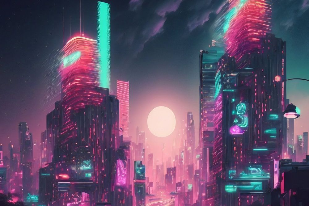 Dive into the mesmerizing world of this Timelapse in a Night City art piece, crafted in the Vaporwave and Retro-Futuristic styles. The aesthetic of this captivating artwork transports you to a cyberpunk-inspired dreamscape, where vibrant colors and dazzling cityscapes create a surreal fusion of past and future.