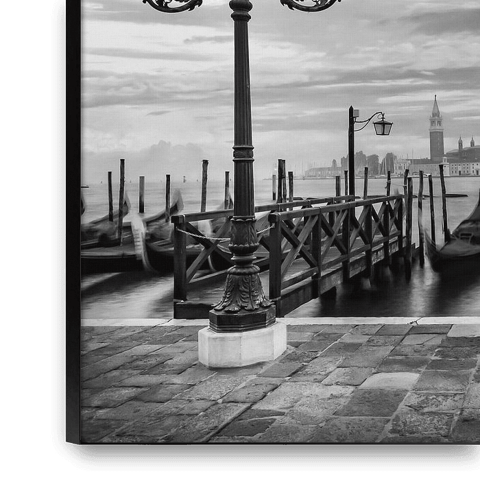 Buy the photo VENICE Gondolas during Golden Hour | monochrome by Melanie Viola on canvas, ArtFrame, poster and wallpaper, printed on demand in high quality.