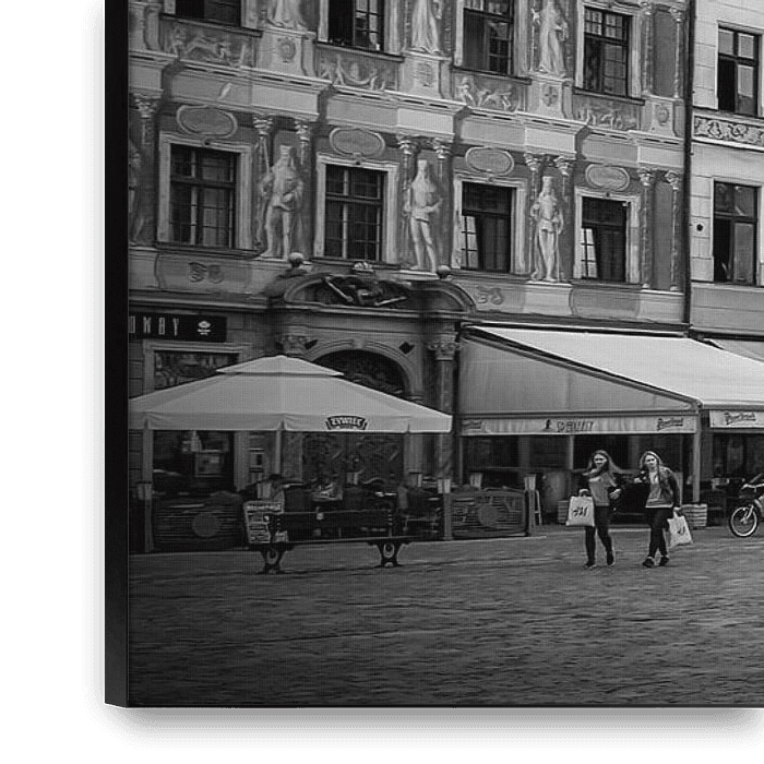 Buy the photo WROCLAW Market Square and tenement houses | panorama monochrome by Melanie Viola on canvas, ArtFrame, poster and wallpaper, printed on demand in high quality.