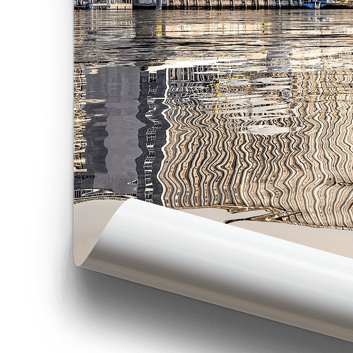 The monumental grain silo of Meneba is reflected in a digital version of the Maashaven in Rotterdam.