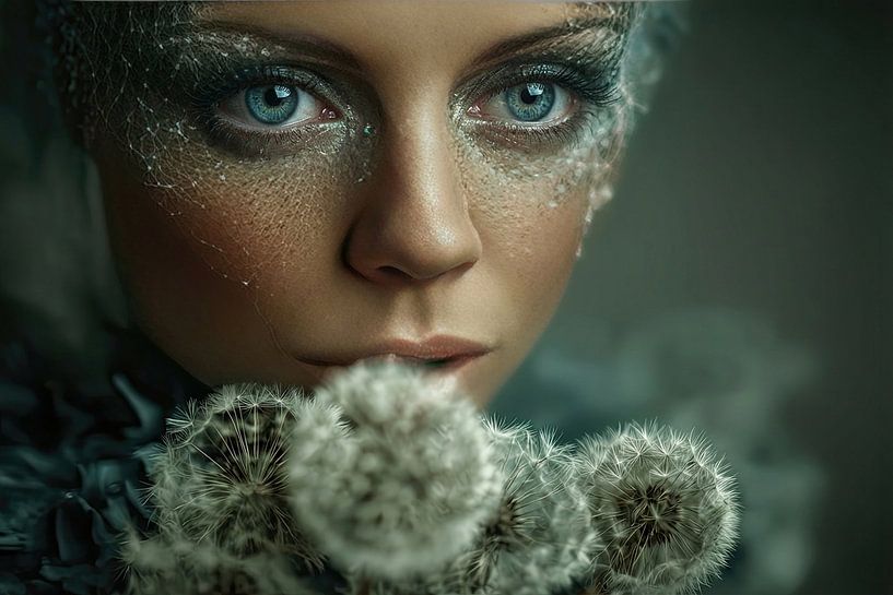 Buy this flower art surrelistich portrait woman with flowers dandelion fluff dandelion by Egon Zitter on canvas, ArtFrame, poster and wallpaper, printed on demand in high quality.