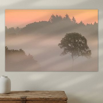 Foggy Beech tree landscape during a beautiful fall morning by Sjoerd van der Wal Photography
