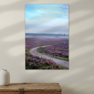 Footpath through blooming heather plants during sunrise by Sjoerd van der Wal Photography