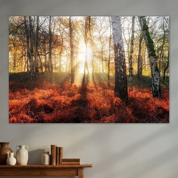 Zonsopkomst in het berkenbos in de herfst by Dennis van de Water