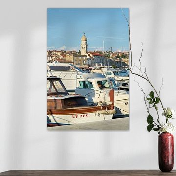 Boats in the port of the town of Krk on the Adriatic Sea in Croatia by Heiko Kueverling