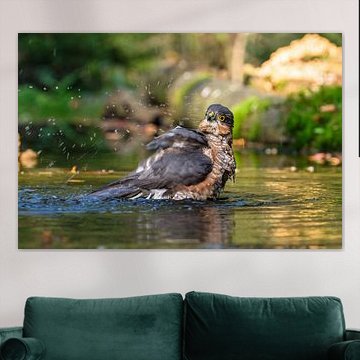 Sperwer in bad by Joke Beers-Blom